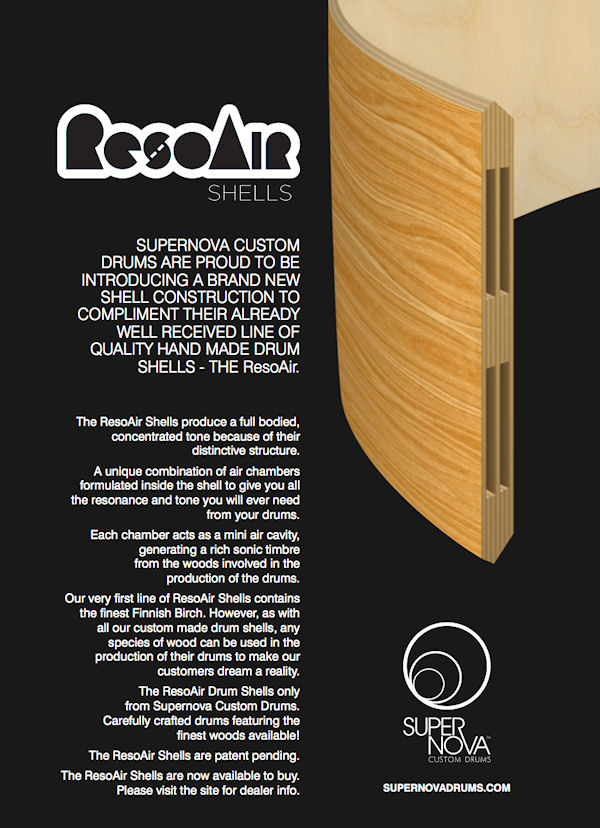 Supernova Custom Drums announces a brand new shell construction complimentary to their actual line of hand made Drum Shells, the ResoAir Shells.